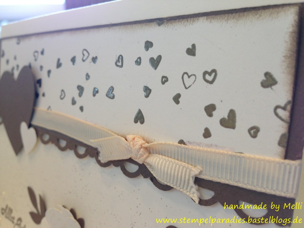 Das große dunkle Herz in der Mitte ist in Gold auch embossed, einfach Vanille.Herz ausschneiden, mit VersaMark großflächig betupfen, Goldpulver drauf und ab unter den Heißluftfön–voilá ein goldenes Herz 🙂