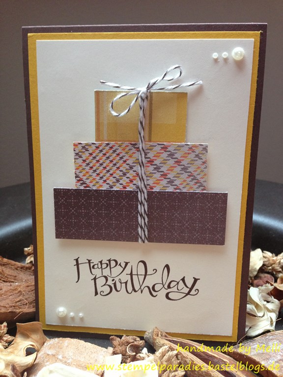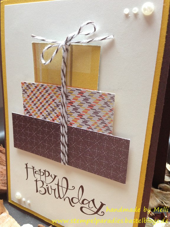 Nach meinen ganzen Weihnachtskarten habe ich heute eine Geburtstagstkarte gebastelt…in herbstlichen Farben und mit dem Designerpapier „Für kühle Tage“ aus dem aktuellen Herbstkatalalog!!