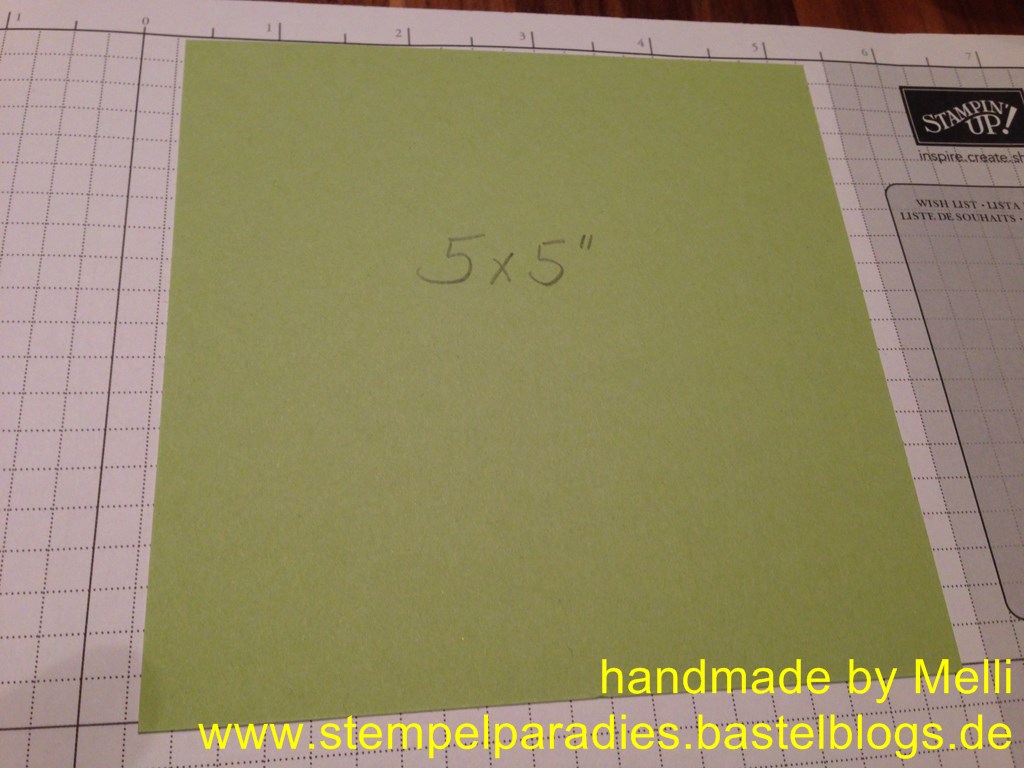 1. Ihr braucht ein 5 x5 “ großes Stück Cardstock oder Designerpapier.