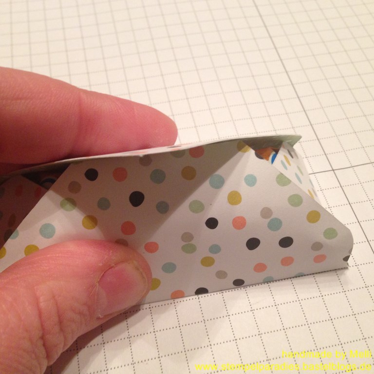 Jetzt alle Falzen knicken, und drei Küsschen oder ähnliches einlegen und die Seiten einschlagen