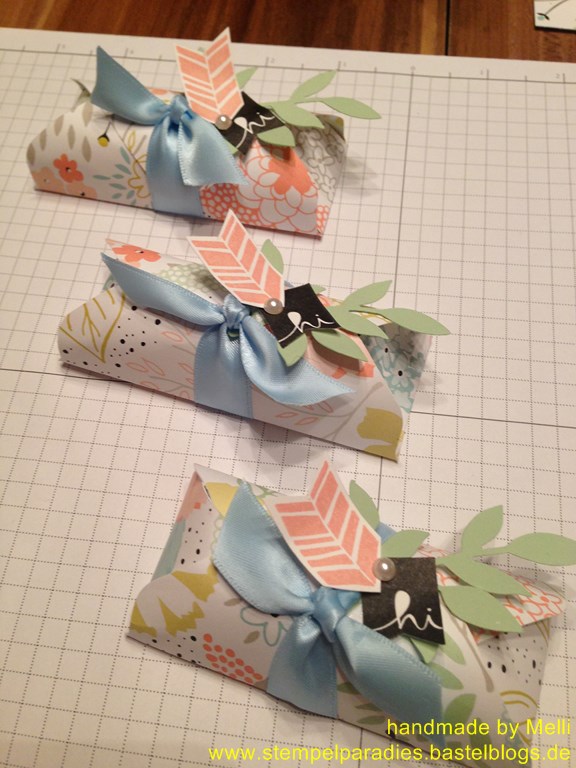 Ich habe mich für einen Goodie entschieden…weil kleine Geschenke immer gut ankommen. Und zwar gibt es eine Verpackung für Küsschen oder eine andere Süßigkeit. Bei mir sind jetzt 3 Küsschen verarbeitet.