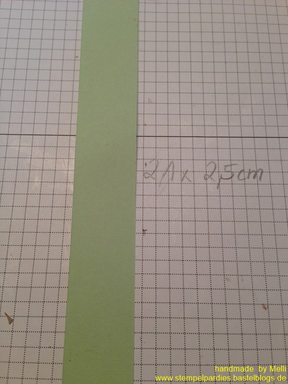 Dann schneidet euch einen 21 x 2,5cm langen Streifen aus.