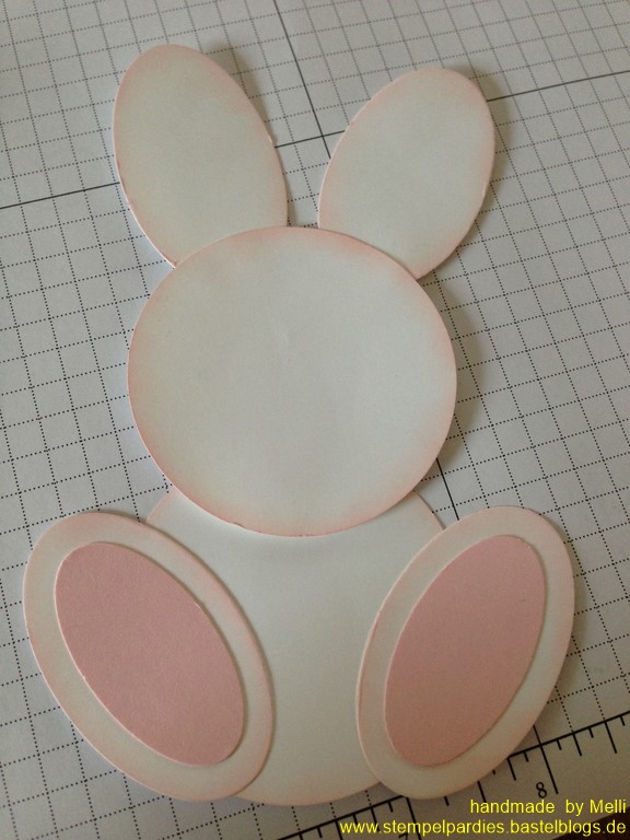 Dann die beiden anderen Weißen Ovale HINTER den Kopf kleben