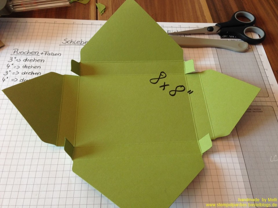 IMG_6430 (Kopie) ← Zurück Weiter → Dann schneidet ihr die Laschen wie im Bild zu sehen ein. und knickt schon mal die Falzlinie vor.