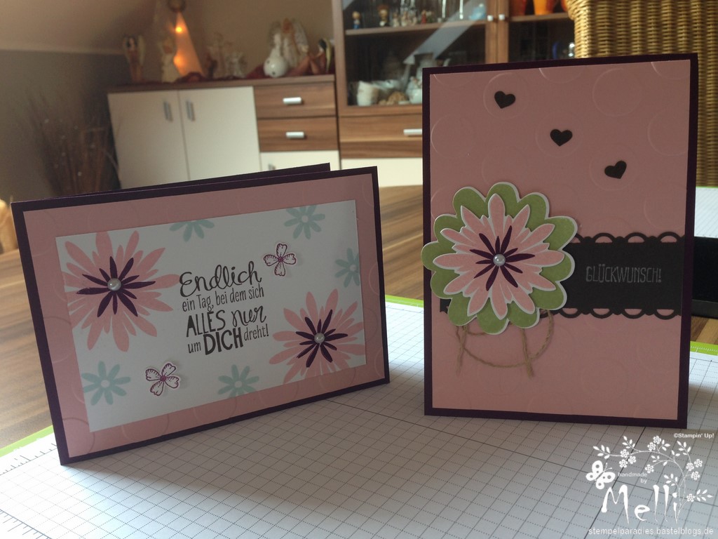 Gestern abend hatte ich wieder meinen geliebten Stempelstammtisch und ich habe nach einigen Anlaufschwierigkeiten (bei mir klappte irgnedwie gar nichts) mich für 2 Karten entschieden..mit dem neuen Klarsicht-Stempelset Flower Patch.