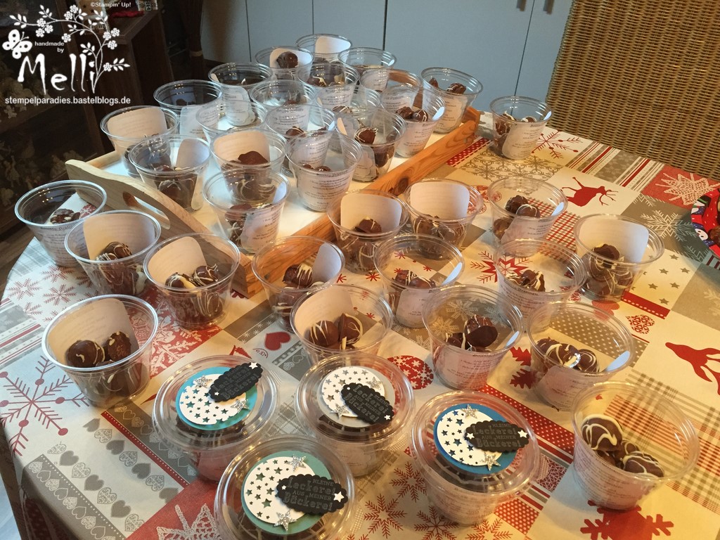 Ich habe Kokos-Pralinen gemacht..schmecken wirklich wie Bounty, nur besser 🙂 Und als Verpackung habe ich einen ClearCup genommen und das Rezept extra zum Nachmachen noch mit MDS ausgedruckt und mit reingeklebt..