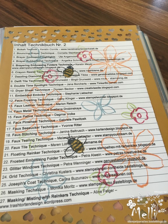 Und ein ganz ganz großer Dank geht an Kerstin von Kerstinskartenwerkstatt.de, die das ganze organisiert hat und alle Techniken zu sich hat schicken lassen und dann sortiert hat, so das jeder jede Technik bekommt 🙂  DANKE liebe Kerstin!!