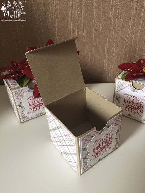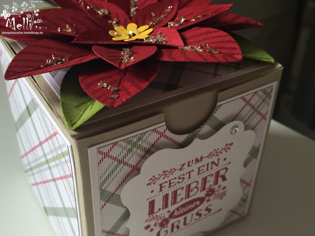 Aber habe ich eine Box für euch wofür ich auch die neue Stanze für den „Weihnachtsstern/Blüte) die man als 3D-Objekt wunderbar auf Schachteln drapieren kann.