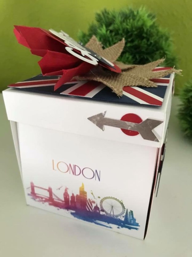 Die Bilder in der Box und die Silhouette von London außen sind gedruckt und ausgeschnitten und aufgeklebt.