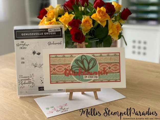 Passendes Designerpapier in den Farben gibt es auch in dem DSP Set „Märchenhaftes Mosaik“