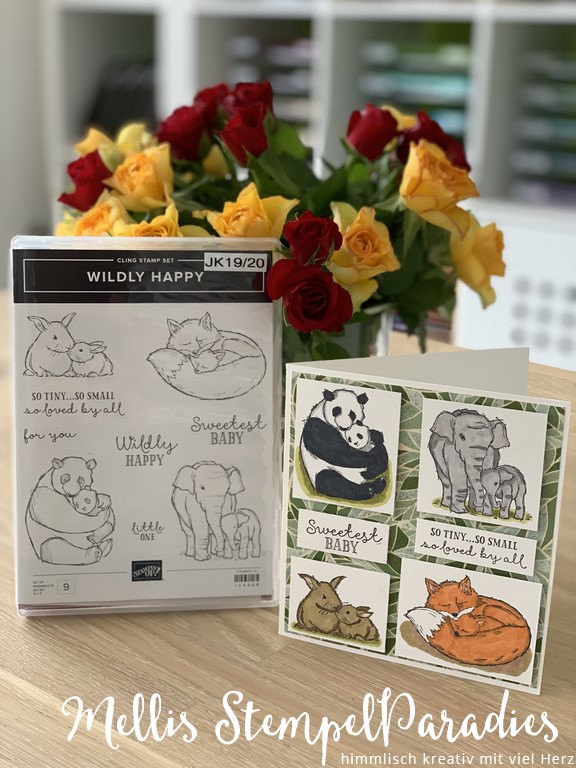 Letztes Wochenende hatte ich ja meine Katalogparty und diese Karte mit dem Set Wildly Happy (englische Version) habe ich ausgestellt gehabt