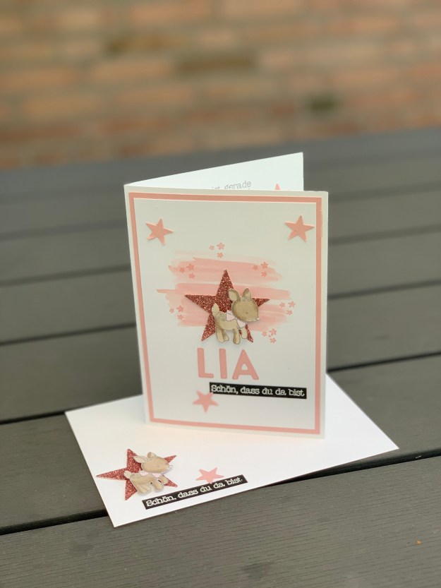Deshalb ist diese Karte von meinem Basteltisch gehüpft, mit passenden Umschlag.