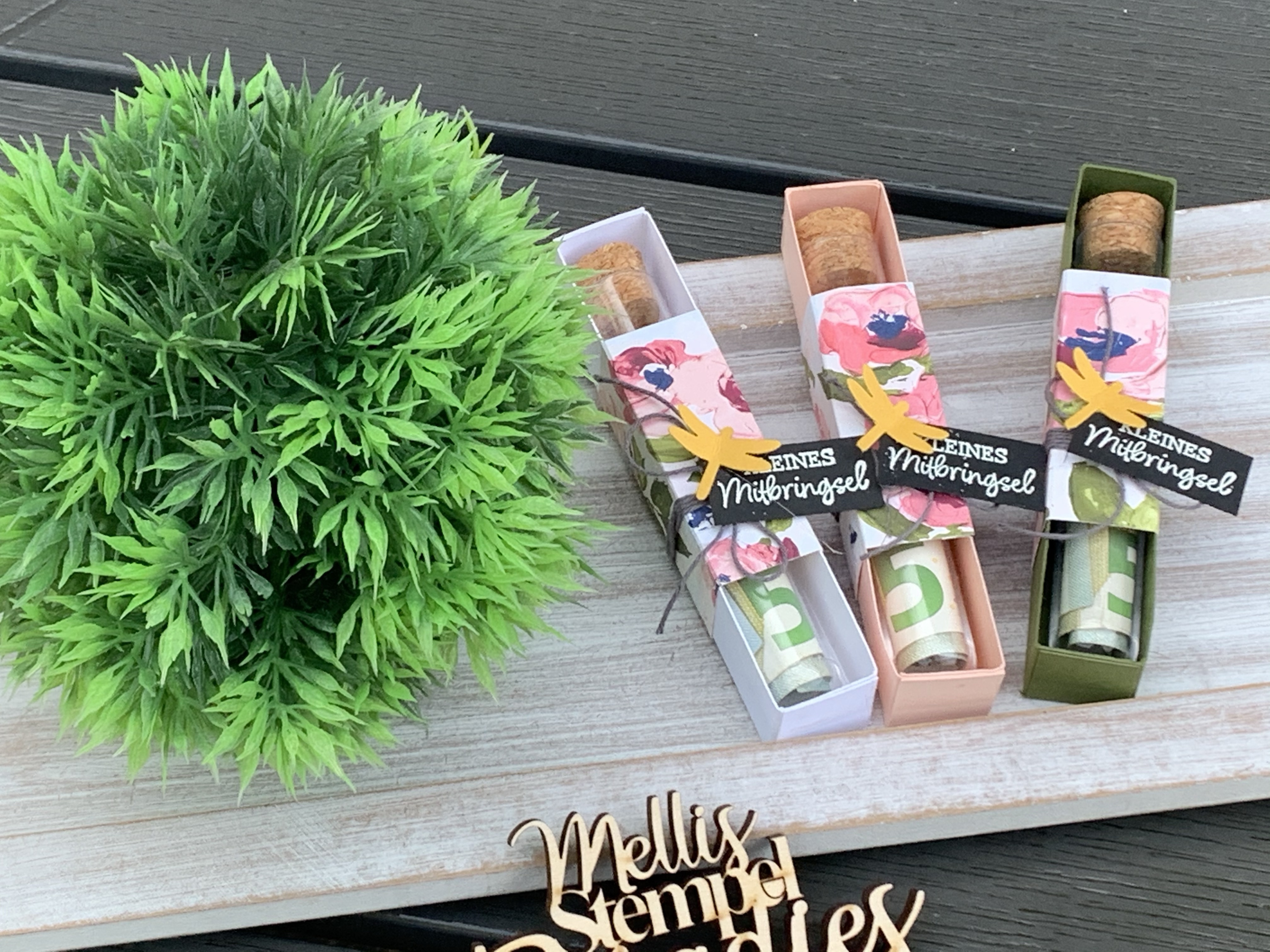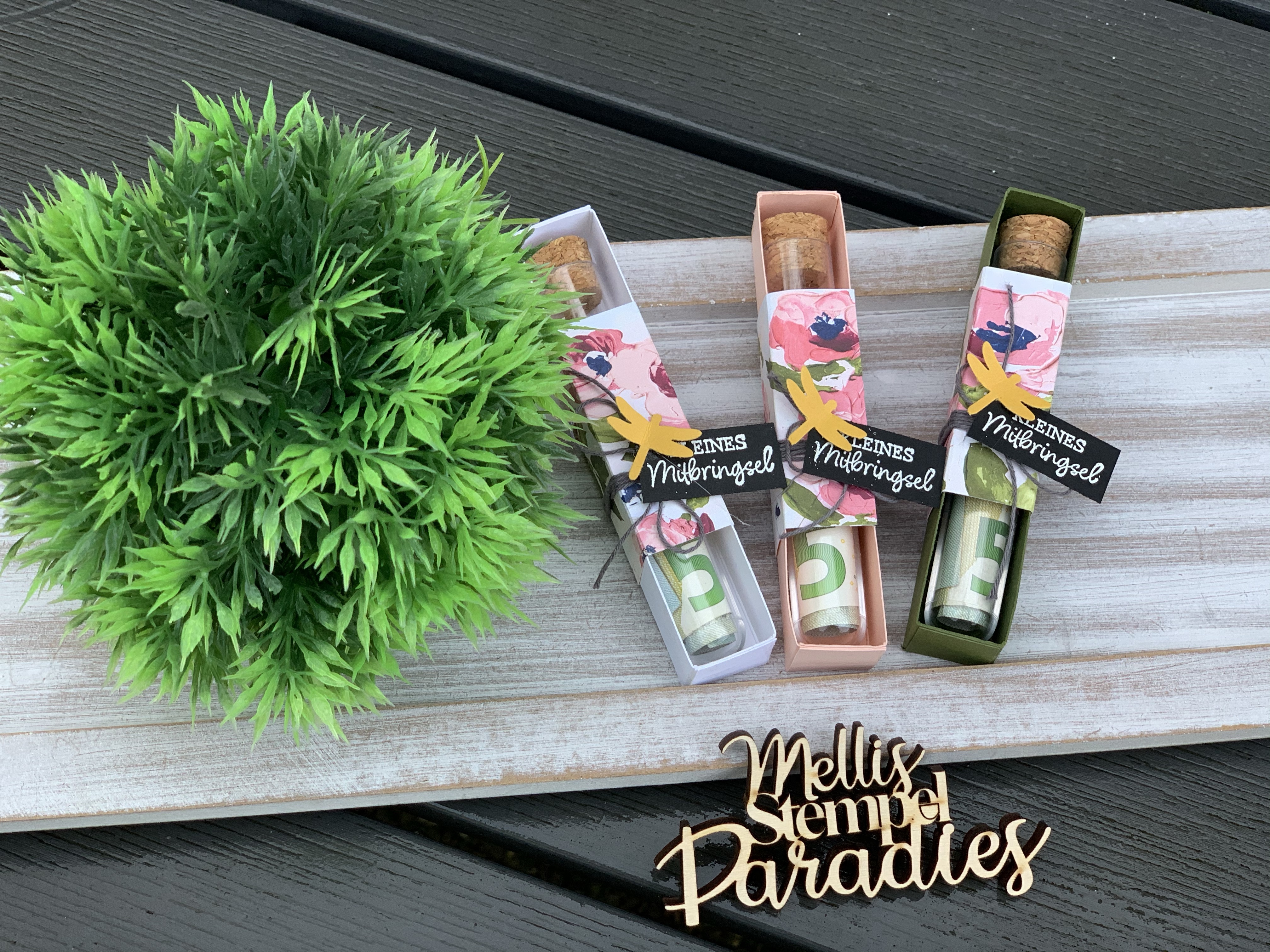 eine schöne frühlingshafte Verpackung mit den kleinen Glasröhrchen.