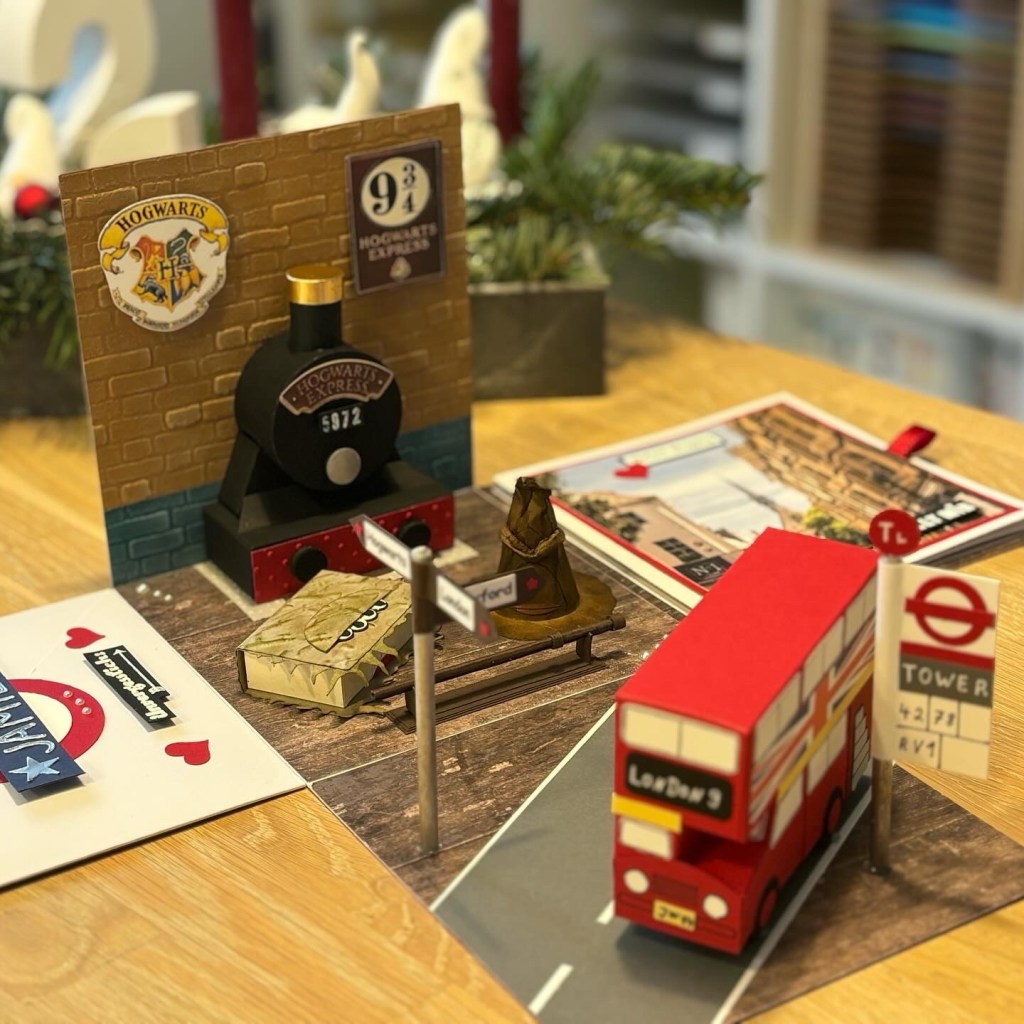Den Hogwarts Express und Gleis 9 3/4 ❤️ den Sprechenden Hut, das Monsterbuch der Monster und einen Zauberstab .. alles aus Papier und ohne Plotter❤️