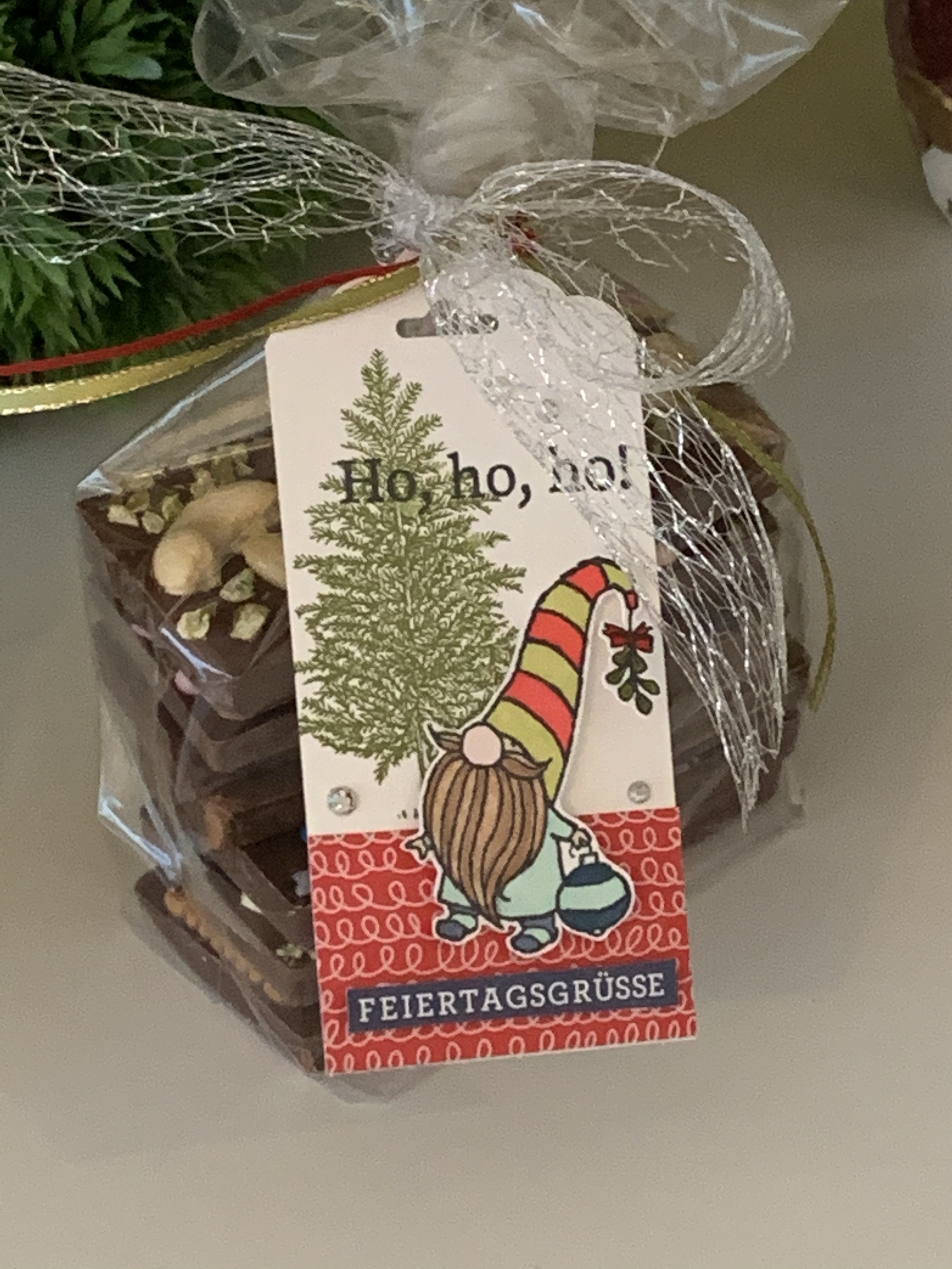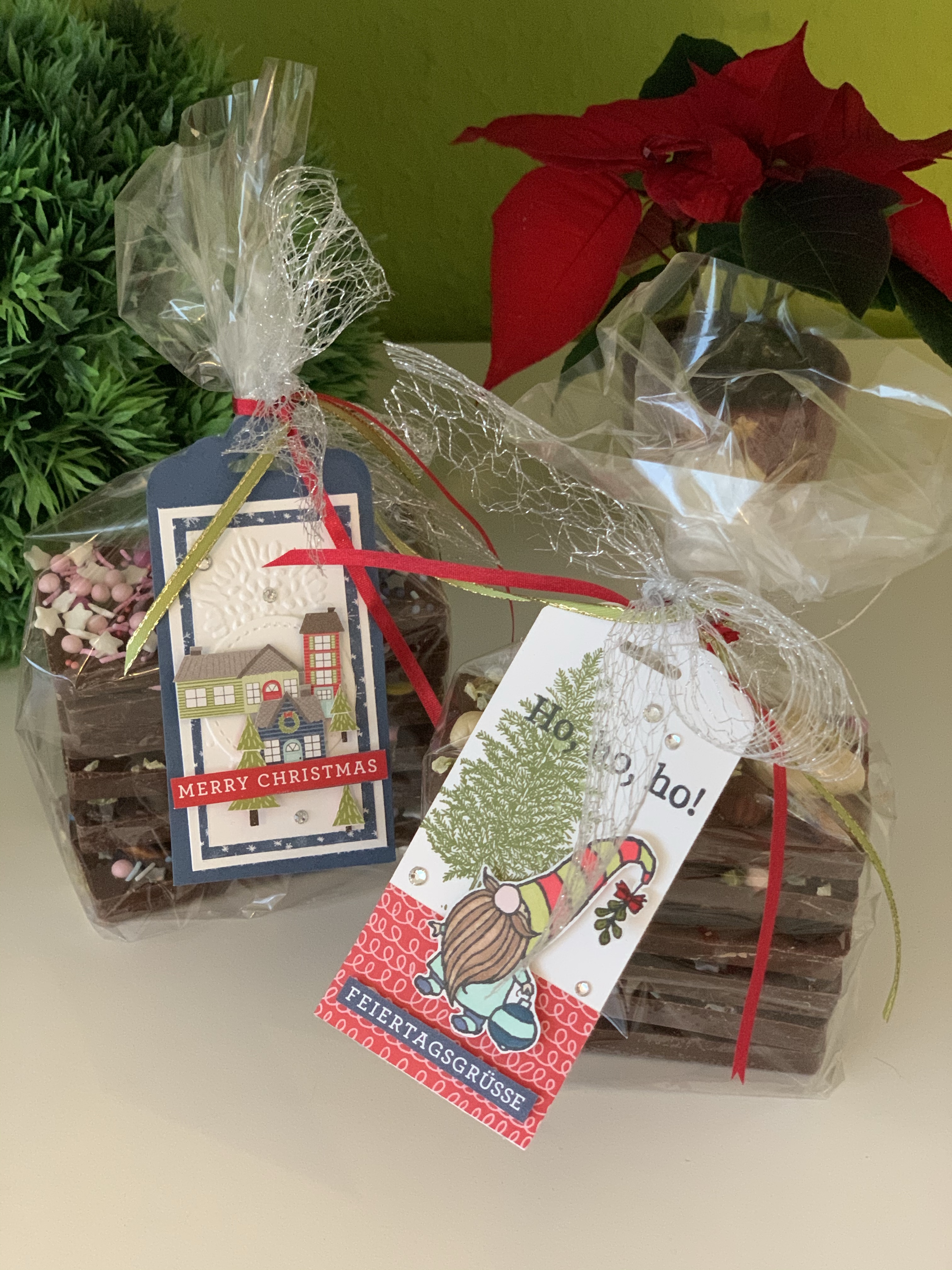 Und ich starte den Blog Hop heute mit meiner Ideen für eine selbstgemachte weihnachtliche Schokolade, die ich zum schön verpackt habe. Am Schluss könnt ihr auch was gewinnen.