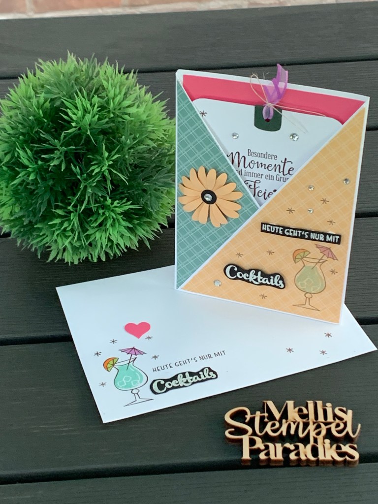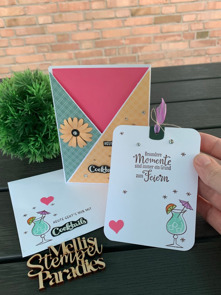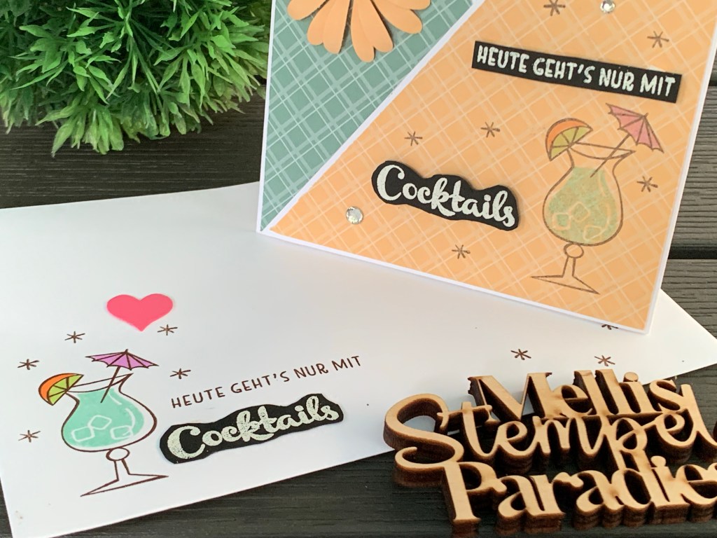 Für den Cocktail habe ich mir das tolle Stempelset „Nichts geht über“ genommen und mir alles rausgesucht, was ich für eine schöne sommerliche Karte brauche.