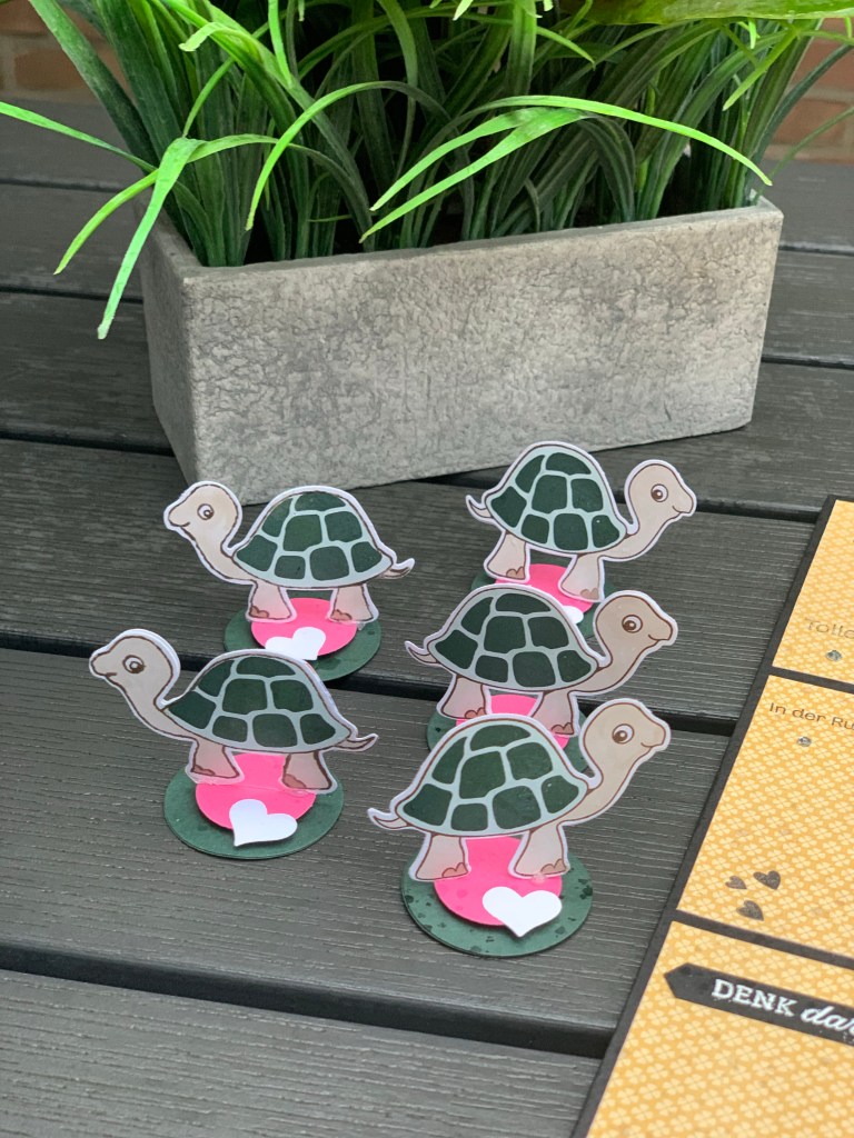 Die Figuren sind aus dem Set „Chill-Kröten“ und „Count on me. Und wie ihr sehen könnt habe ich sie doppelt gestempelt, so das beide Seiten gleich sind