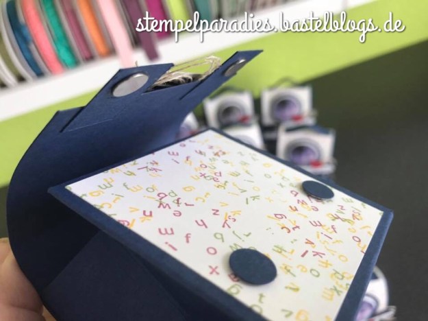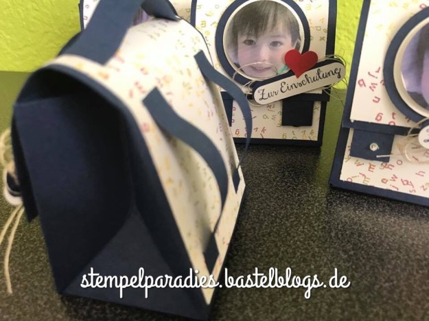 Der Schulranzen ist mit dem Punchboard für Geschenktüten gemacht. Diesmal Größe L. Hier seht ihr wieviel größer sie ist gegenüber den letzen Schulranzen