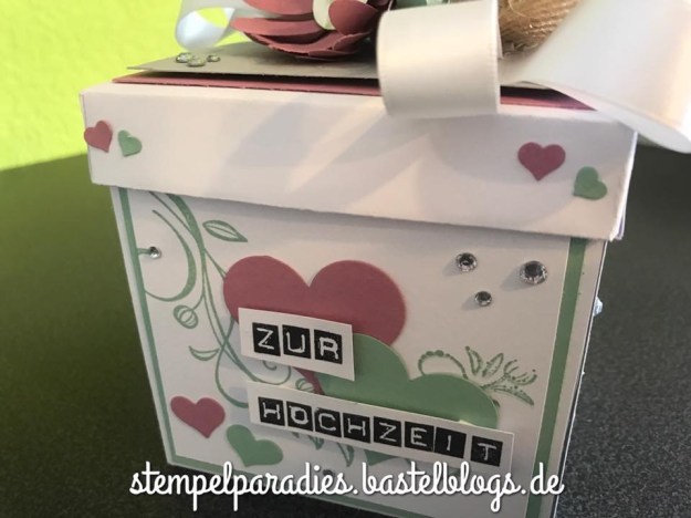 Da konnte ich dann das neue Produktpaket „Glück und Meer“ ausprobieren und das ist daraus geworden.. Eine Explosionsbox mit dem Thema „Ameland und Spiekeroog“ wurde gewünscht mit dem Wunsch das Fotos vom Brautpaar mit unter gebracht wird und eine Möglichkeit Geld verstecken zu können.