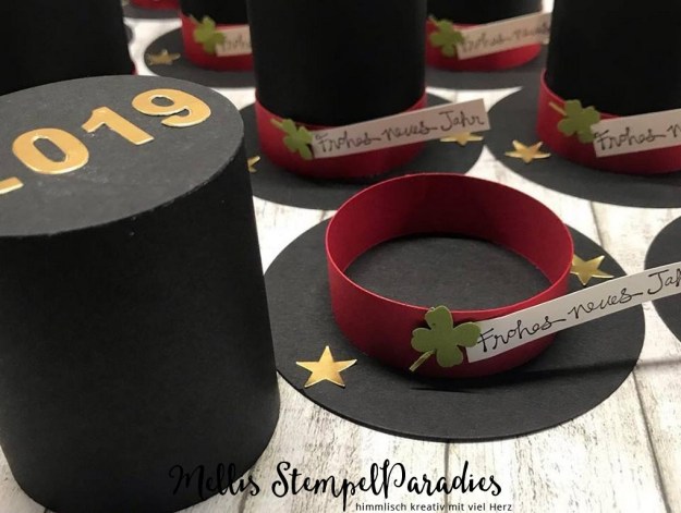 Auch der Elf und ich sind zu Silvester eingeladen und wir haben gestern einige Goodies aus dem HUT gezaubert ..hihi, kleines Wortspiel..ich weiß, ziemlich flach 🙂