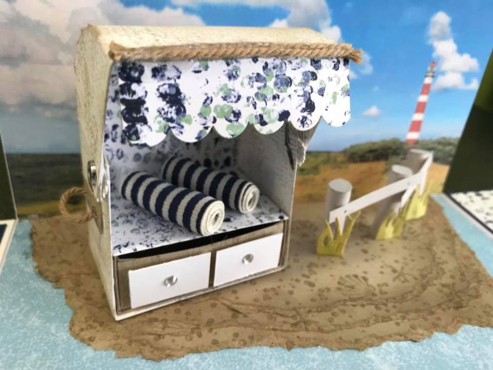 Ich habe mich dann für eine Box in Strandkorb-Optik entschieden. Hier habe ich auf Flüsterweiß, Zimtbraun und Pazifikblau gesetzt.