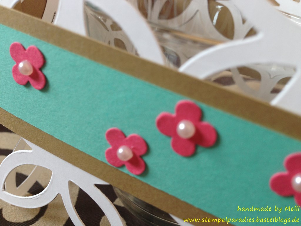 Hinterher noch mit Kordel dekoriert und ein Schmetterling gestempelt und ausgestanzt und dekoriert…