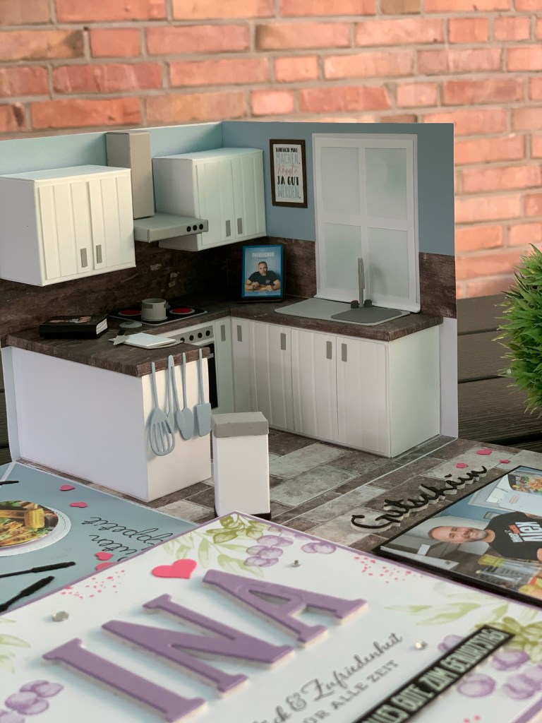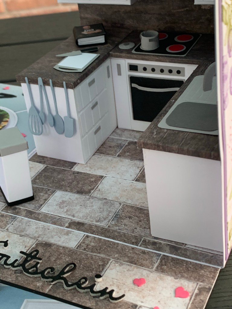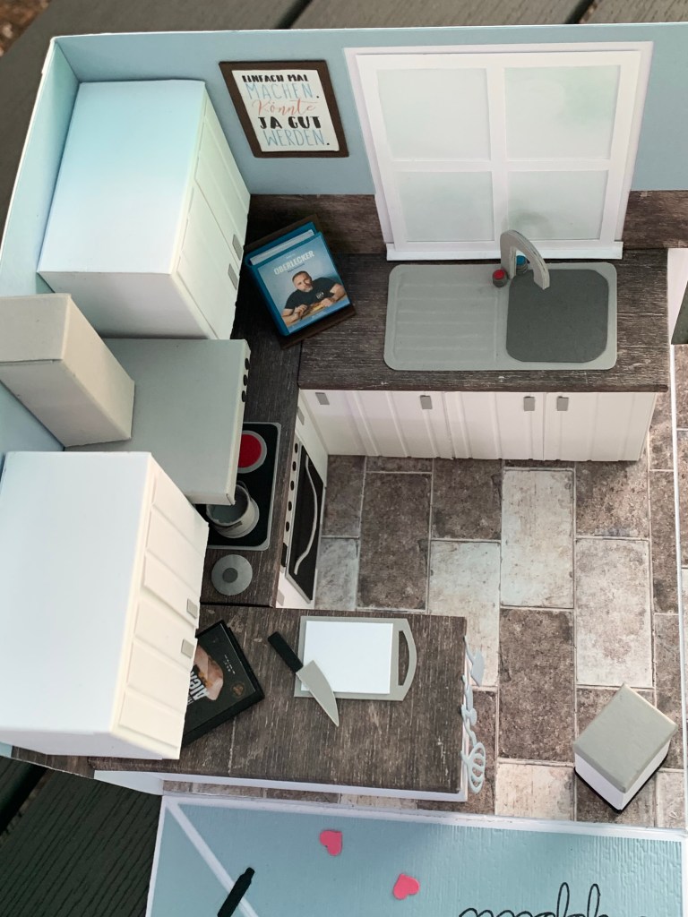 Ich bin wirklich verliebt, denn mein Elf hat sich mit der Planung der Küche echt übertroffen, alles nur mit Schneidbrett und seiner Phantasie und Vorstellungsvermögen. Da sind wir wirklich ein tolles Team.