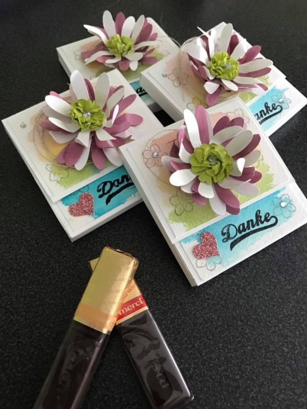 Ich habe heute für meine Freundin 4 Stück gemacht zum Abschied für die Erzieherinnen aus dem Kindergarten ihres Sohnes, der im Sommer in die Schule kommt.